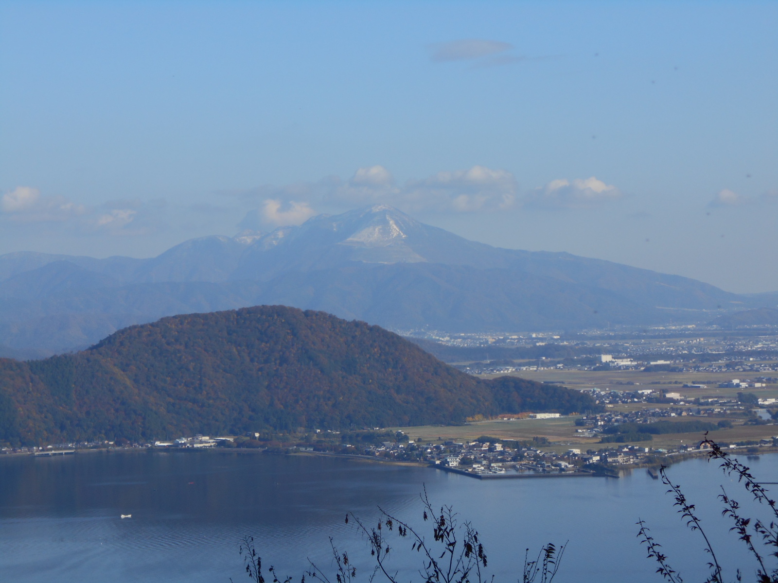 菅浦の須賀神社前の大イチョウはまだ色づき始めですが、奥琵琶湖パークウェイでは、展望台付近のモミジが赤くきれいに色づき、今がちょうど見頃となりました。展望台から正面に見える伊吹山は、11月19日にこの冬初の冠雪となりました。紅葉越しに見る伊吹山は大変きれいです。ぜひ奥琵琶湖パークウェイのドライブをお楽しみください。ちょっと一休みでは、展望台のレストランや道の駅「塩津海道あぢかまの里」のご利用が便利です。