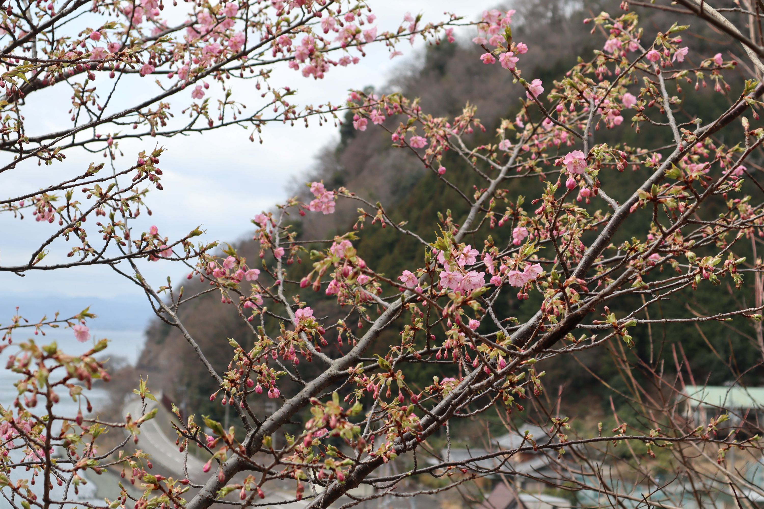 奥琵琶湖パークウェイの菅浦ゲート付近に植樹された河津桜の開花が進んでいます。三寒四温と言いますが、少しずつ温かくなるにつれ開花も進むものと思います。3月8日に道の駅「塩津海道あぢかまの里」で開催のイベントでは、時折、雪がちらつくような寒い日でしたが、たくさんの来場者でにぎわっていました。開通が待たれる奥琵琶湖パークウェイですが、3月17日に菅浦ゲートから展望台までの折り返しで開通見込みです。全線の開通は、3月下旬の見込みです。